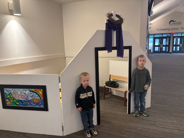 Leaders will often teach kids a concept or biblical narrative, and then they will find items that connect within Play Church. During Lent, I taught all CovKids about various symbols of Lent and what made them significant. Therefore, they found: